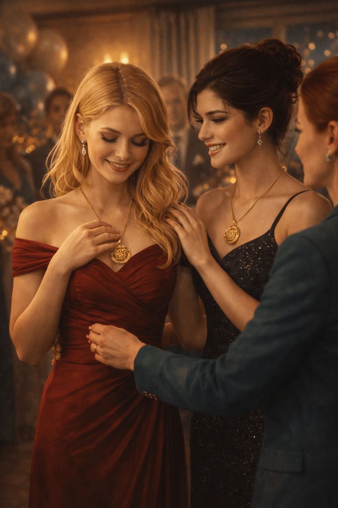 On such nights, four years apart, their grandmother had placed identical medallions into their hands — heavy, old-fashioned, unmistakably Bulgarian — not beautiful by modern standards, perhaps, but rich in weight and meaning. They didn’t wear them often, but they never left them behind. These weren’t just ornaments tucked away in a box; they were a thread, subtle and intense, tying them to the women who had walked before them, and maybe — just maybe — to the women they were still growing into.