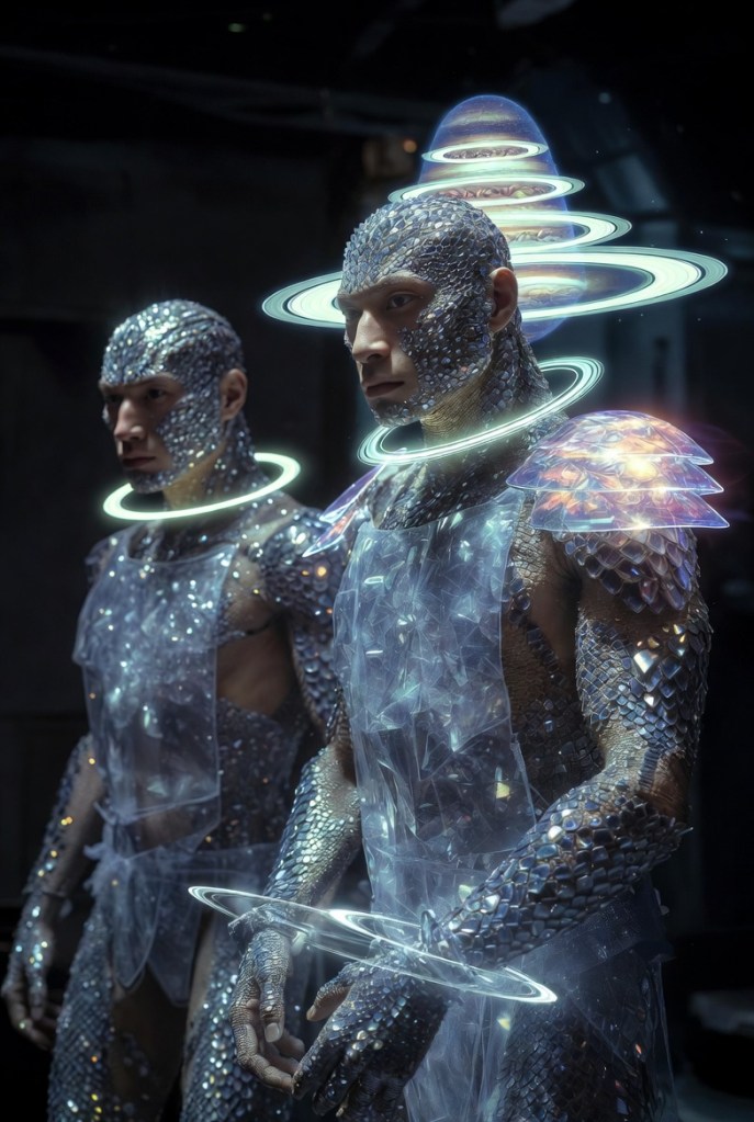 He only nodded in confirmation. They discovered that she understood the conversation in Bulgarian, while he understood it in English. What that meant, neither of them dared to interpret at that moment. Just listening was enough to pick up more than a few important details, but there was no time to comment — the light and its piercing sound had already halted in front of them. And then the door opened… not for one, but for two beings. Both were covered in the now-familiar material, but one had its hands held in front, bound by something like invisible restraints. On its shoulders were strange tokens, resembling epaulettes stacked on top of each other – yet somehow suspended in midair above its body. The sight was difficult to comprehend or put into words. The so-called “epaulettes” looked holographic, floating above the creature’s huge, muscular shoulders and nested like Russian Matryoshka dolls. The other reptile had similar ones, but significantly fewer – only three. It was of lower rank – probably a guard or something of the sort. Without any explanation or ceremony, it grabbed Diona and, with the other hand, dragged Antonio, who fought back like a madman. This only earned him a heavy blow from the reptile’s thick tail, knocking him unconscious so he wouldn’t cause more trouble.